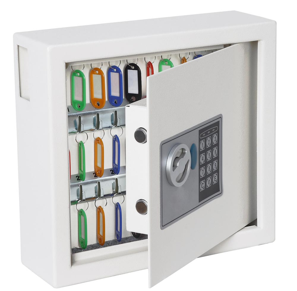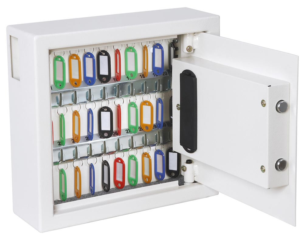 Schlüsseltresor, 30 Haken, BxTxH 300x100x280 mm, elektr. Tastenschloss, RAL 9003 signalweiß