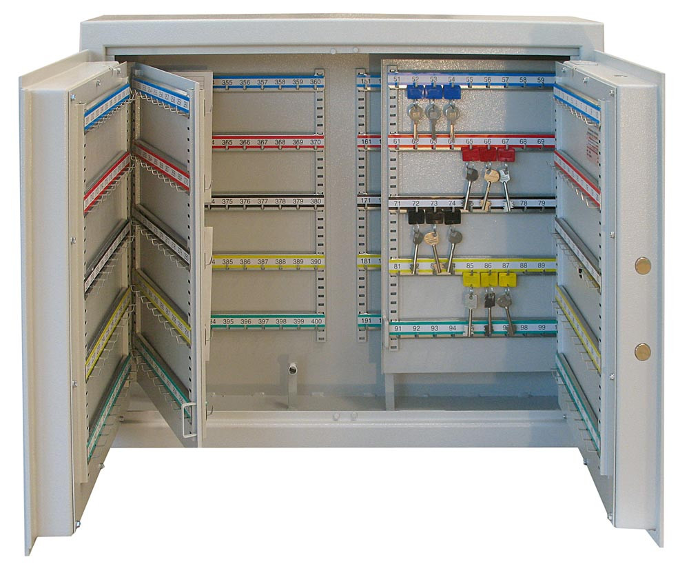 Schlüsseltresor, Sicherheitsstufe A + S1, 400 Haken, 2-türig, BxTxH 812x200x636 mm, RAL 7035 lichtgrau