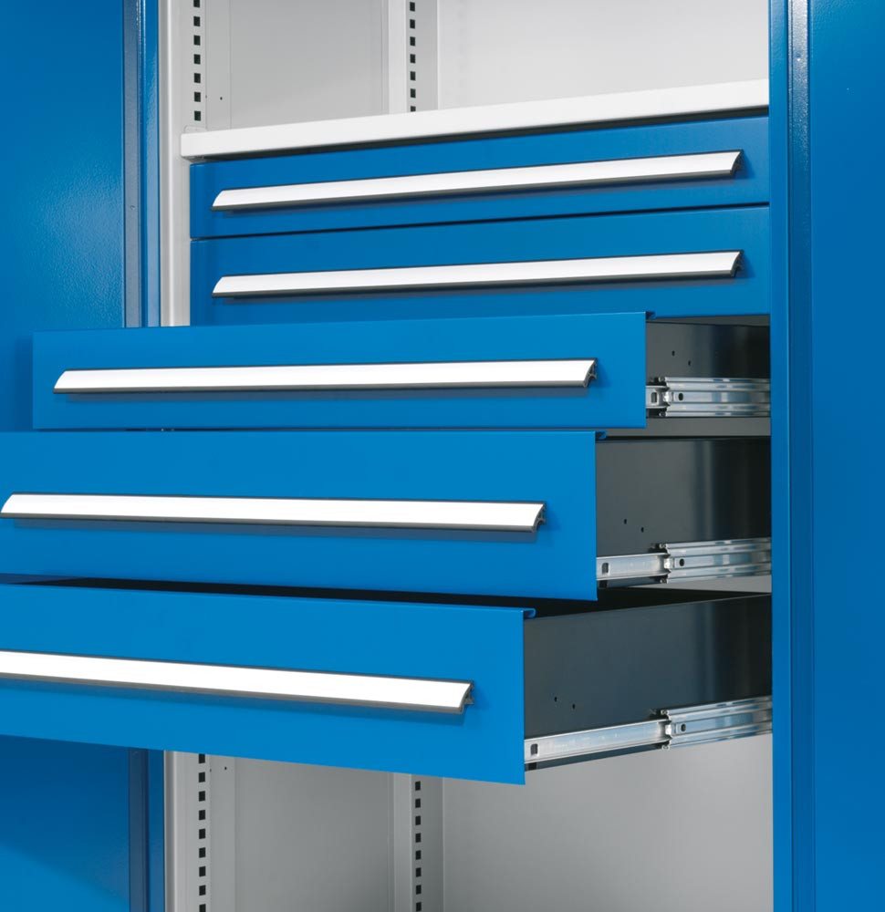 Schublade, enzianblau RAL 5010, Traglast 110 kg, BxH 1000x100 mm E844314