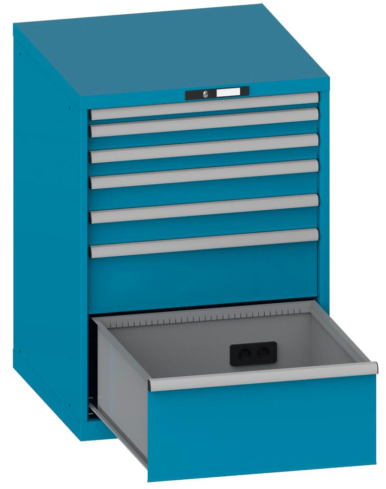 Schubladenschrank, 7 Schubl. 1x50/2x75/2x100/1x200/1x300,4 Steckdosen, BxTxH 717x725x1000,RAL5012 E6422270