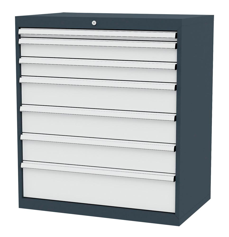 Schubladenschrank, 7 Schubladen: 1x50, 2x100, 3x150, 1x200, mm, BxTxH 900x575x1020 mm, RAL 7016/7035