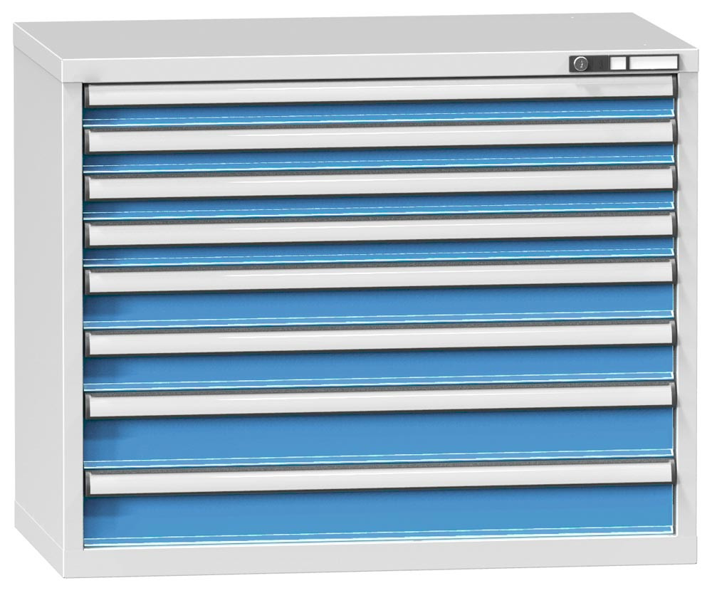 Schubladenschrank, 8 Schubladen: 4x75, 2x100, 2x125 mm, BxTxH 1037x600x840 mm, RAL 7035/5012 E1613733