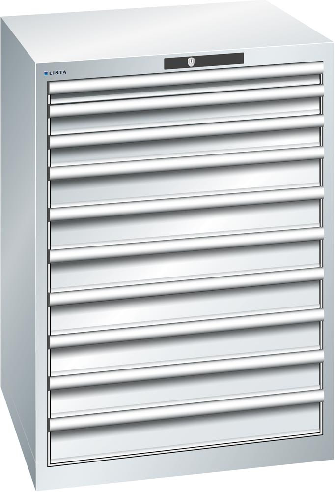 Schubladenschrank, Traglast/Schubl.: 75 kg, 10 Schubl.: 1x50, 2x75, 7x100 mm, RFID-Schloss, BxTxH 717x725x1000 mm, RAL 7035 E6409541