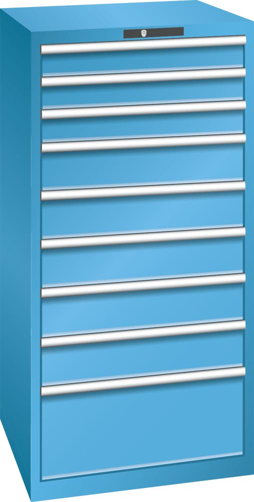 Schubladenschrank, Traglast/Schubl.: 75 kg, 9 Schubl.: 3x100, 5x150, 1x300 mm, RFID-Schloss, BxTxH 717x725x1450 mm, RAL 5012 E6409548