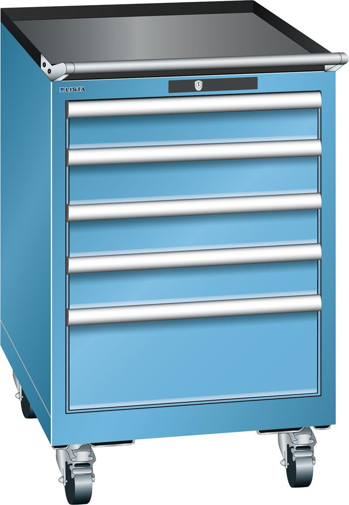 Schubladenschrank, Traglast/Schubl.: 75 kg, fahrbar, 5 Schubladen: 4x100, 200 mm, RFID-Schloss, BxTxH 564x572x890 mm, RAL 5012 E6409500