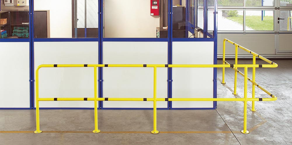 Schutzgeländer, Gerade, Breite 1000 mm, Durchm. 42 mm, Wandstärke 3,2 mm, Innenbereich, grundiert/pulverbeschichtet zinkgelb, VE 2 Stück E833358