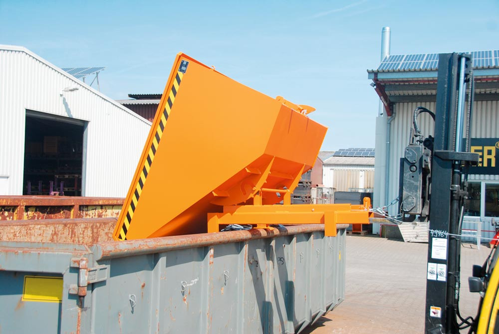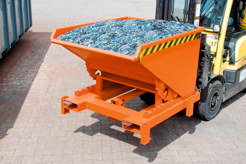 Schwerlastkipper, automatische Entriegelung, LxBxH 1310x805x970 mm, Volumen 0,3 cbm, Traglast 4000 kg, RAL 2000 gelborange E817030