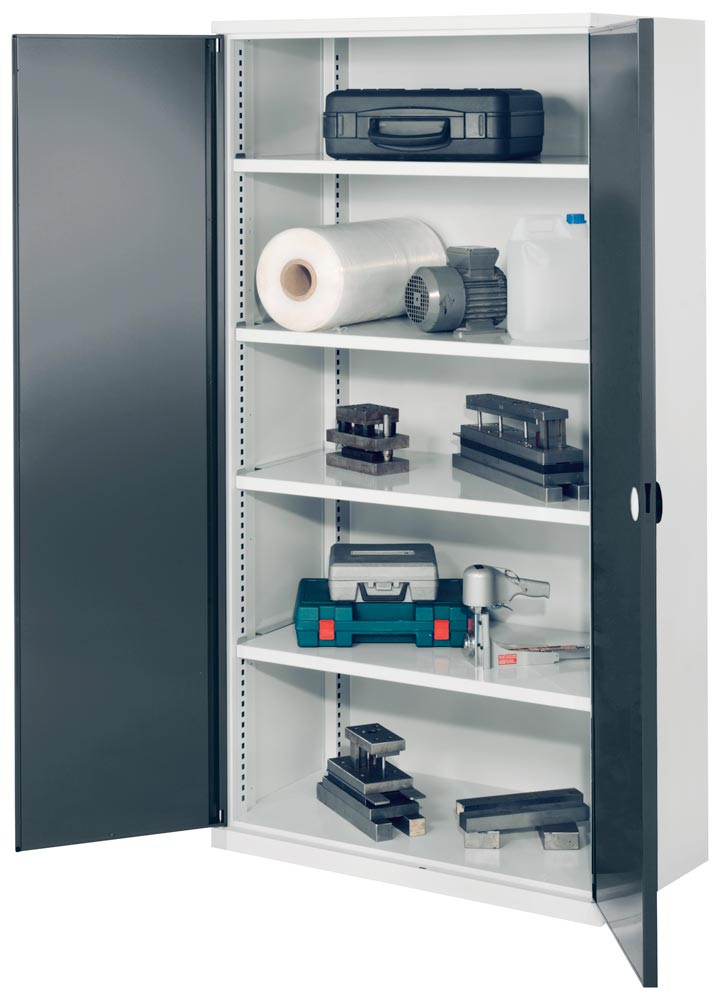 Schwerlastschrank, Vollblechtüren, 4 Fachböden, BxTxH 1000x600x1950 mm, RAL 7035/7016