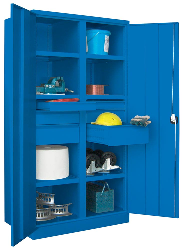 Schwerlastschrank, Vollblechtüren, mit Trennwand, 6 beschichtete Böden, 6 Schubl. 175 mm, BxTxH 1040x630x1950 mm, RAL 5010 E1572917