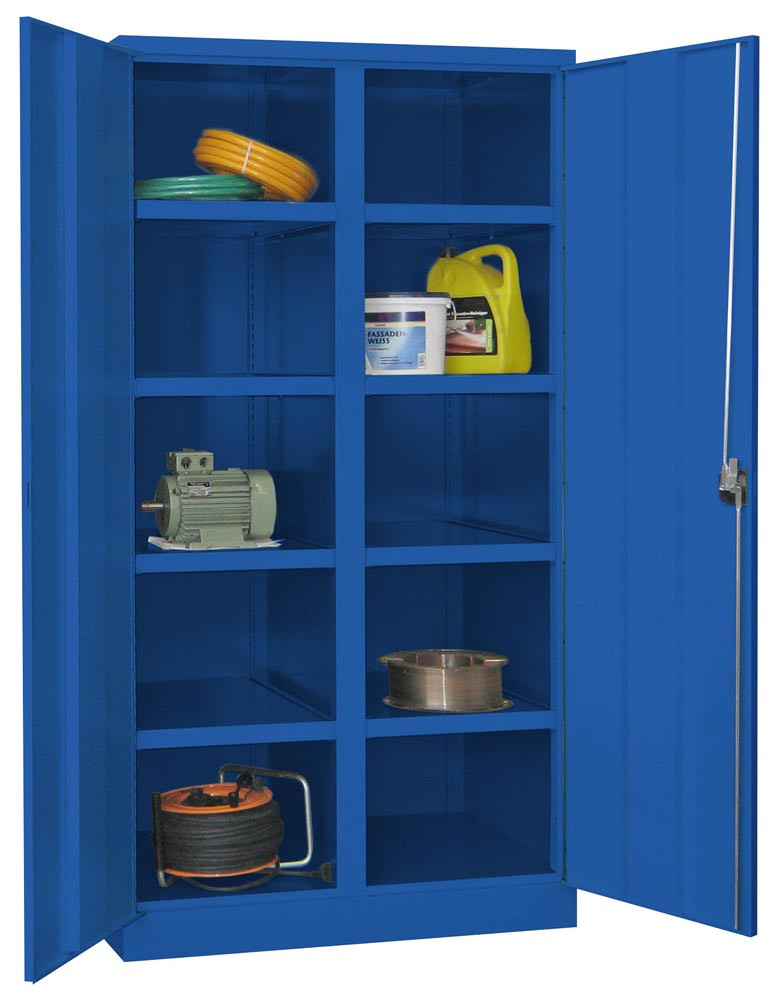 Schwerlastschrank, Vollblechtüren, mit Trennwand, 8 beschichtete Böden, BxTxH 1040x630x1950 mm, RAL 5010 E1572916