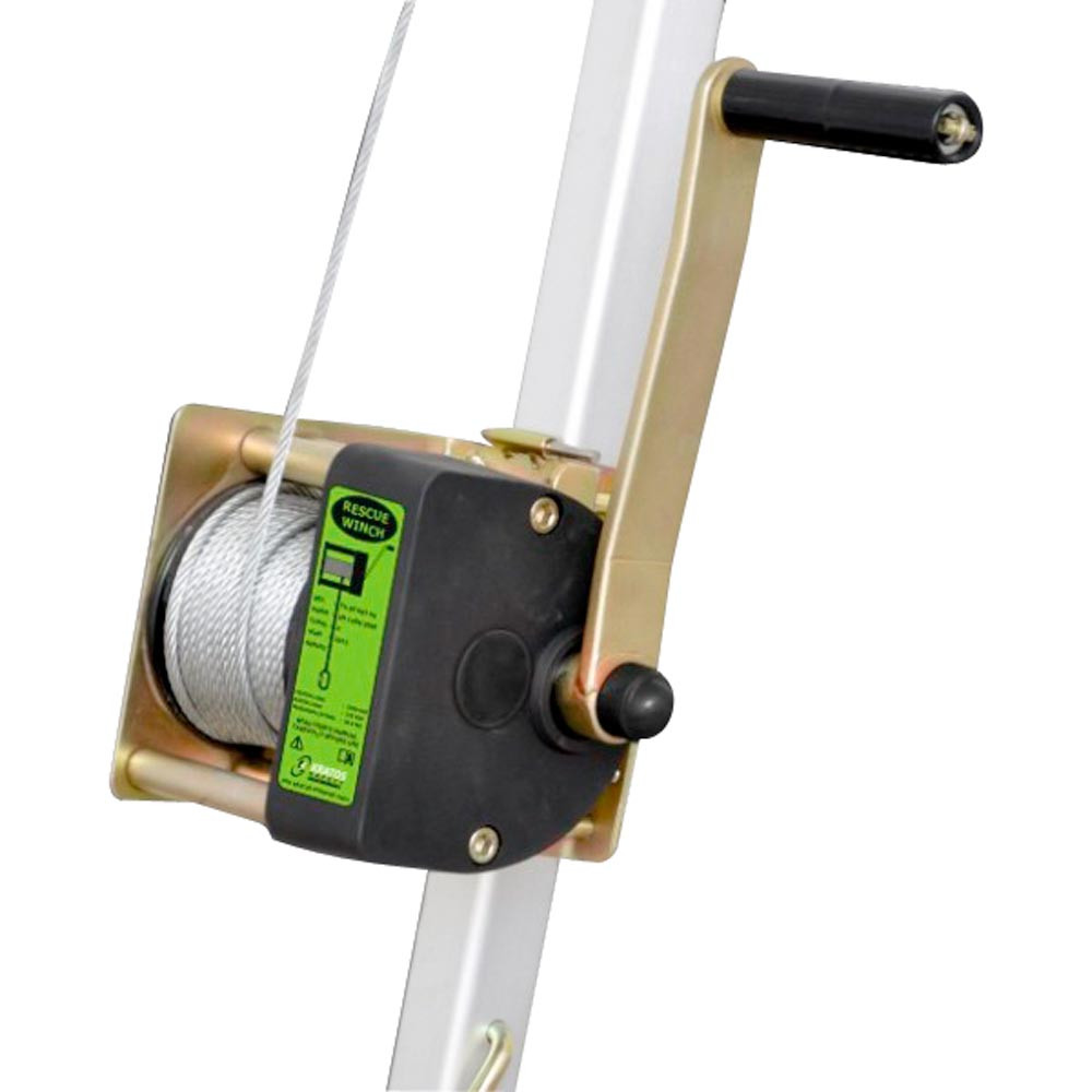 ∙ Passend zum Dreibaum ∙ Zugelassen nach EN 1496:2006 ∙ Inkl. Befestigungssystem für Dreibaum ∙ Personen- und Materialwinde ∙ Traglast für Personen 125 kg ∙ Traglast für Material 300 kg (gem. Maschinenrichtlinie 2006/42/EG und EN 13157:2004) ∙ Stahlseil verzinkt, Ø 4,8 mm