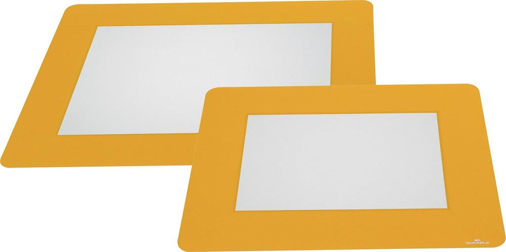 selbstklebendes Bodenmarkierungsfenster zur Kennzeichnung durch Papiereinlagen A5 · wieder ablösbar · einfache Anbringung: Papier wird unter die Beschriftungstasche gelegt und bleibt durch die Rundumverklebung geschützt · anwendbar im Hoch- und Querformat