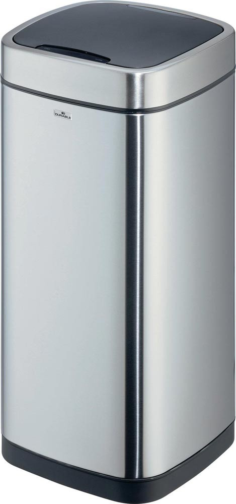 mit Sensor · ermöglichen die kontaktlose Abfallentsorgung in geschlossene Behälter, die besonders unter strengen Hygienerichtlinien erforderlich sind · berührungslose Bedienung durch Sensor-Technik · öffnet durch Bewegungssensor und schließt automatisch, alternativ auch manuell über Open/Close Tasten bedienbar · herausnehmbarer Inneneimer mit Henkel und Beutelfixierung · abnehmbarer Deckel zum einfachen Entleeren · Soft-Close Funktion des Deckels · Korpus aus Edelstahl mit Fingerprint-Proof Beschichtung · rutschfester Sockel und viereckige Form zum platzsparenden Platzieren · benötigt 4 AA Batterien (nicht im Lieferumfang enthalten)