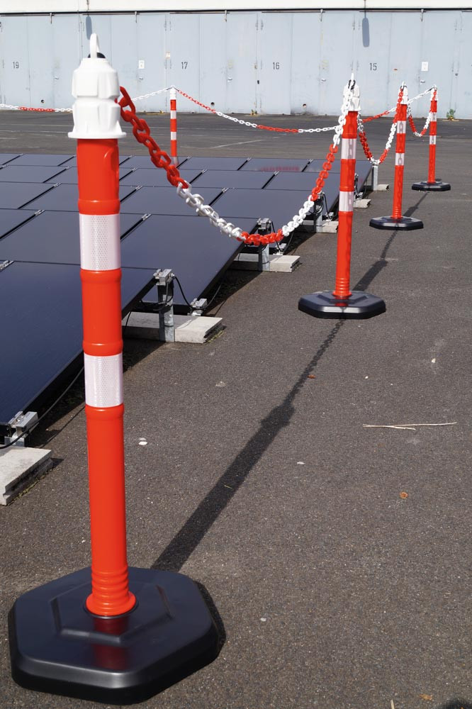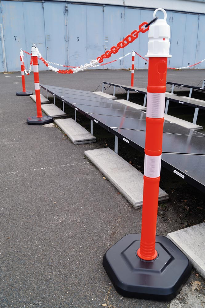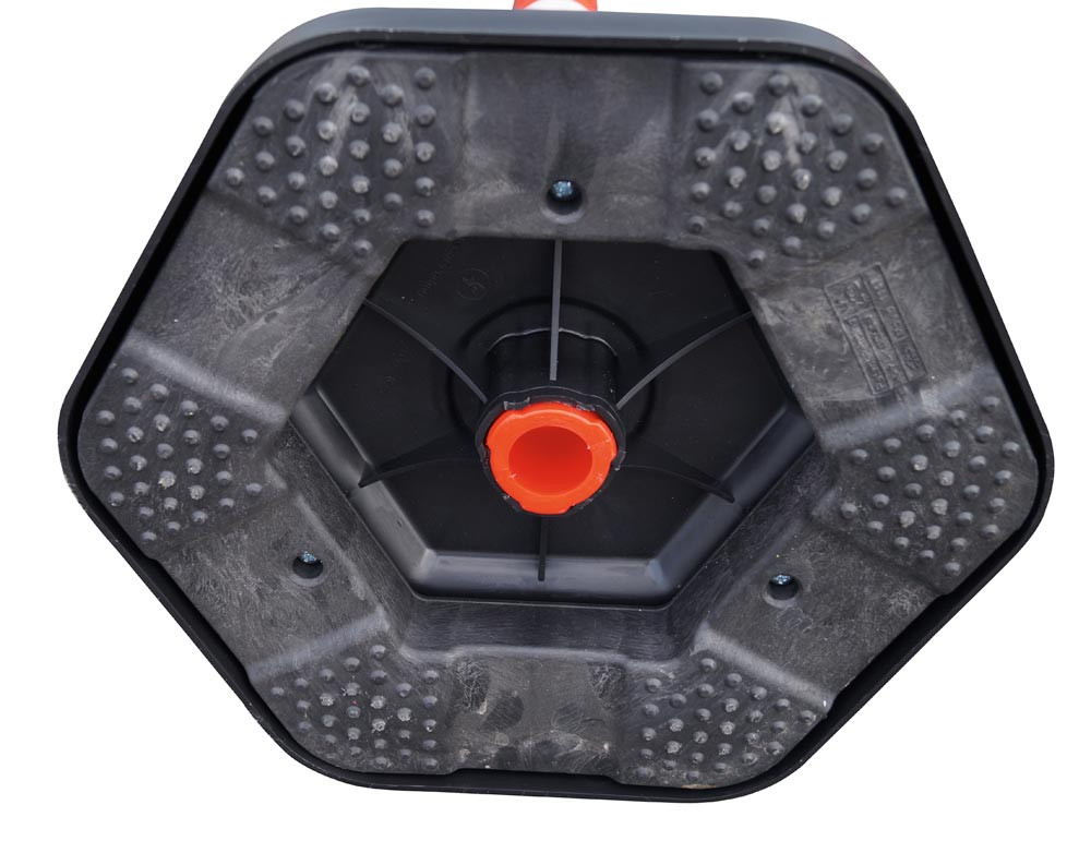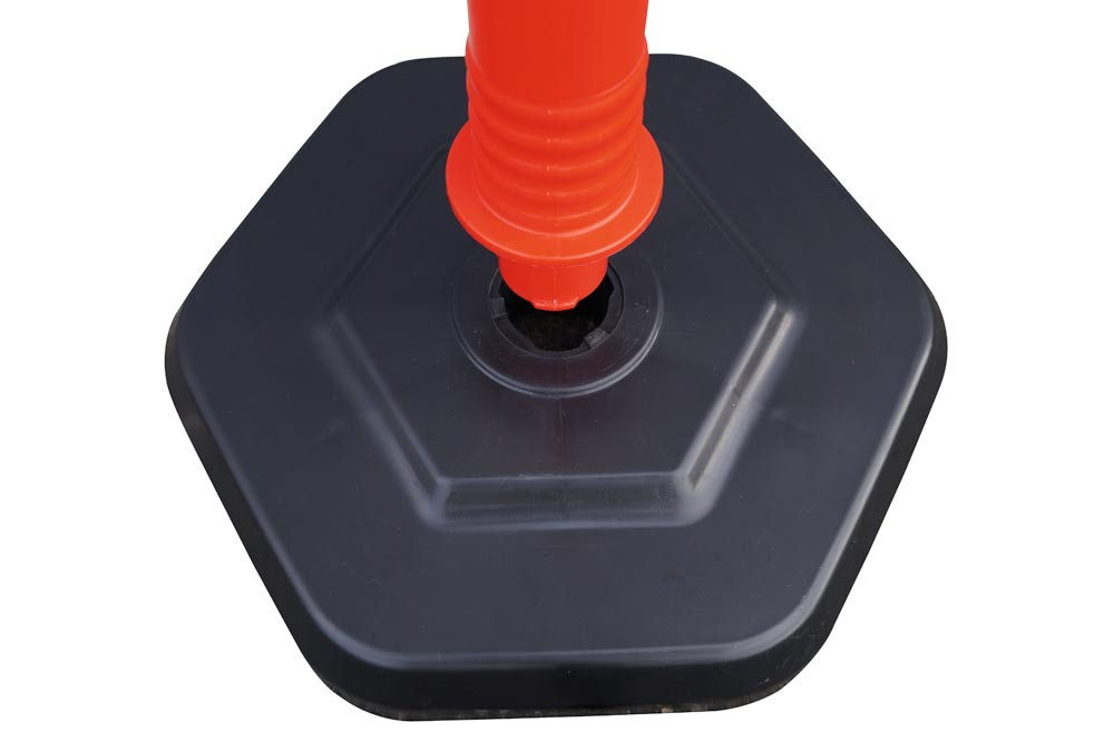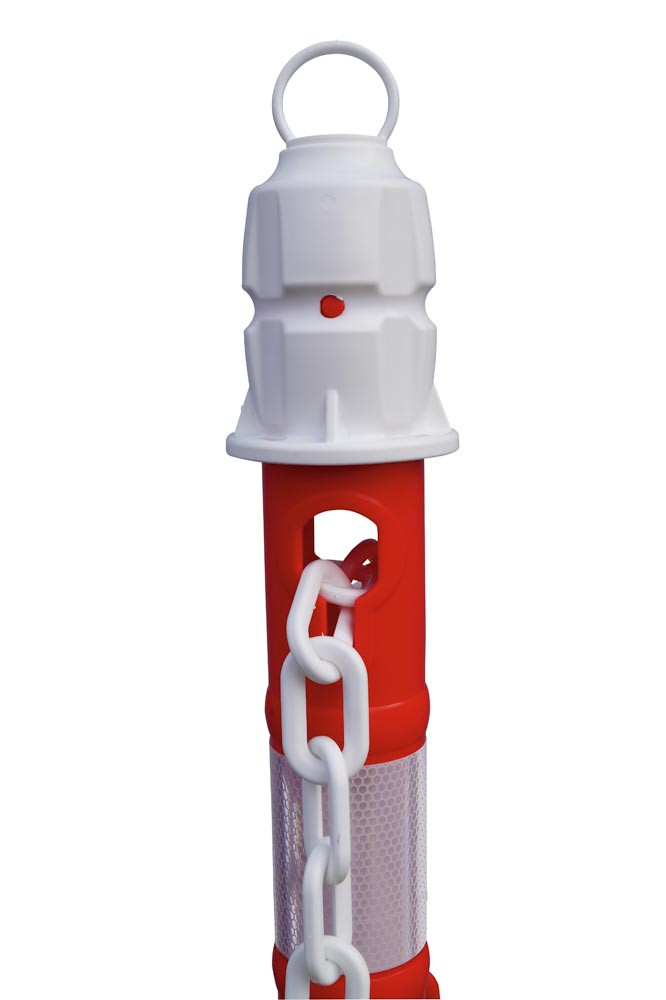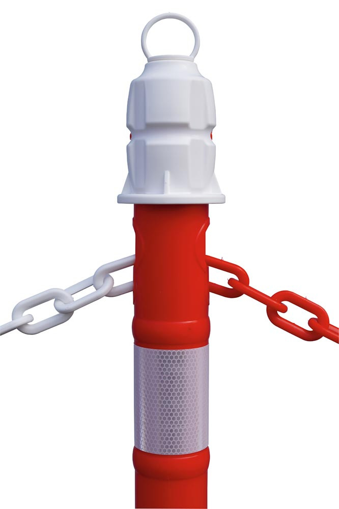 einem Stück ∙ Verbindung von Pfosten und Fuß durch Bajonettverschluss ∙ Material Polypropylen ∙ Farbe rot/weiß ∙ Öse zum Einhängen oder Durchführen der Absperrketten ∙ 2 retroreflektierende Streifen ∙ Max. Abstand zwischen den Sperrpfosten 2,5 m