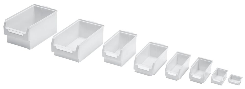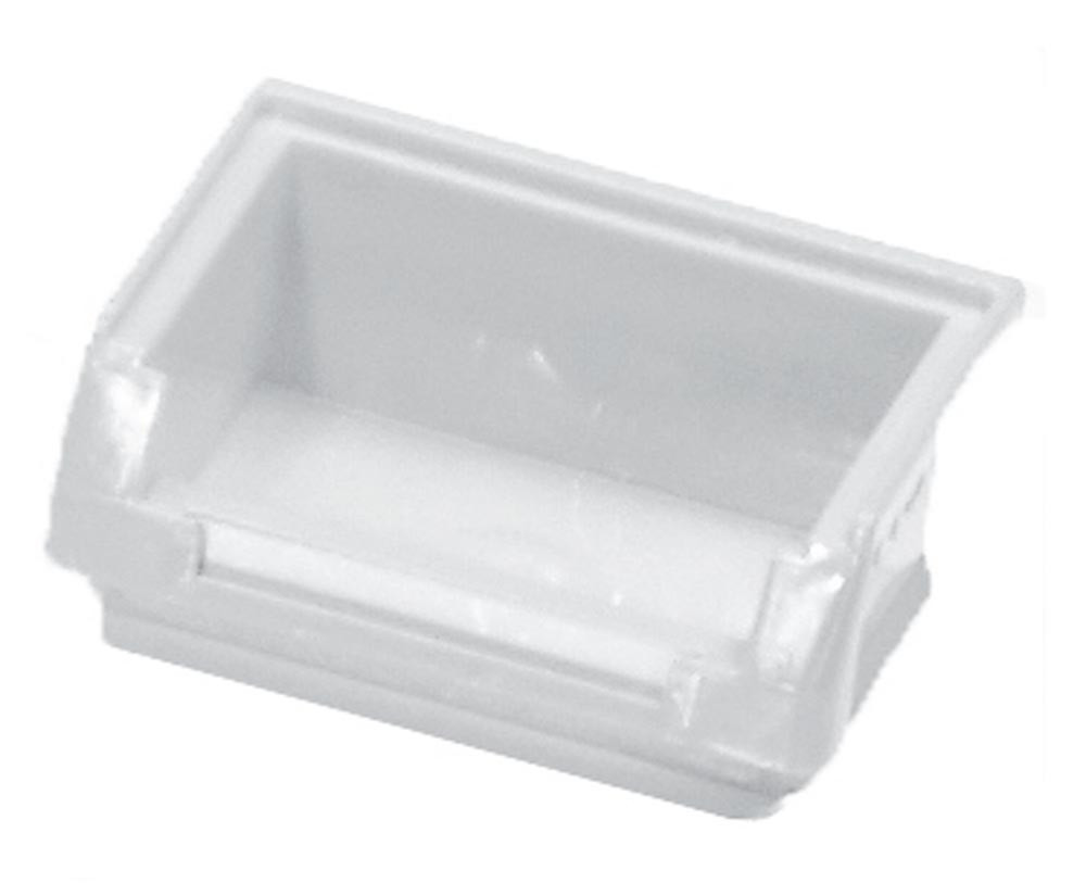 Sichtlagerkasten, mit Aufhängeleiste, BxH 105x45 mm, Tiefe außen/innen 85/65 mm, Farbe naturweiß