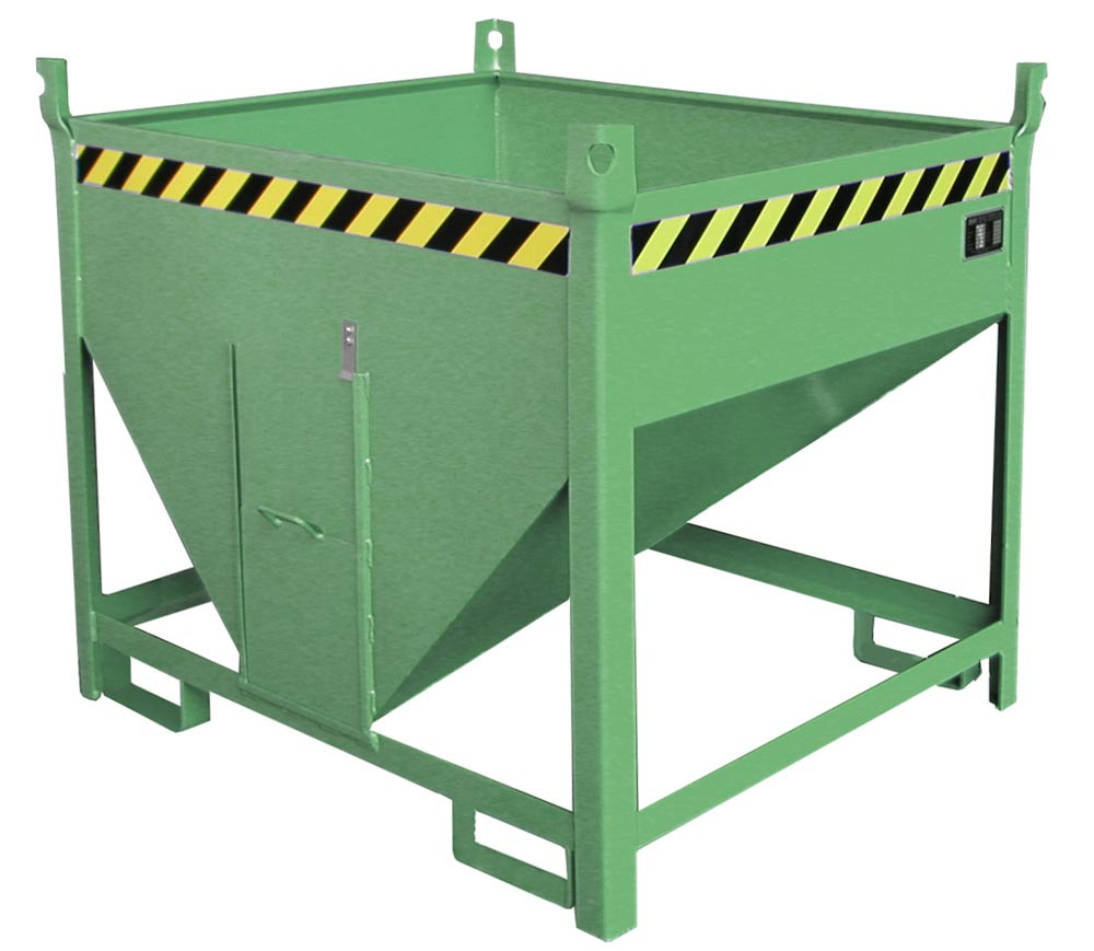 ∙ Für die getrennte Sammlung und Entleerung von Schüttgütern ∙ 3-fach stapelbar ∙ Robuste Stahlblechkonstruktion ∙ Trichter aus 2 mm Stahlblech mit umlaufender Verstärkung ∙ Bodenschräge 30° ∙ Grundrahmen mit Einfahrbügeln ∙ Aufnahmen für Gabelstapler und Kran ∙ Auch mit Gabelhubwagen transportierbar