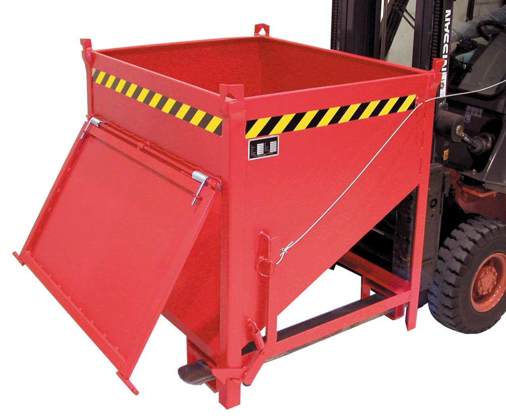 Silobehälter, LxBxH 1000x1200x935 mm, Vol. 0,5 cbm, Traglast 750 kg, stirnseitige Klappe, lackiert RAL 3000 feuerrot E872897