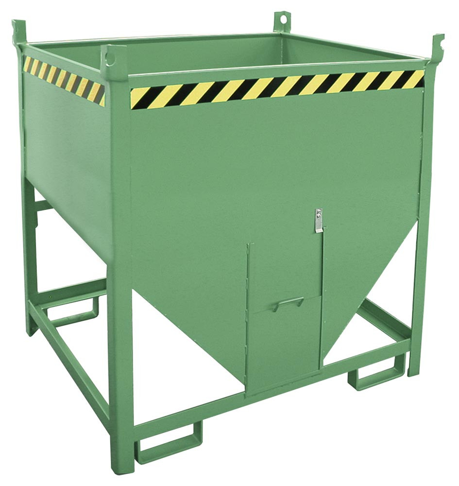 Silobehälter, LxBxH 1000x1200x1260 mm, Vol. 0,75 cbm, Traglast 1000 kg, stirnseitiger Schieberverschluss, lackiert RAL 6011 resedagrün