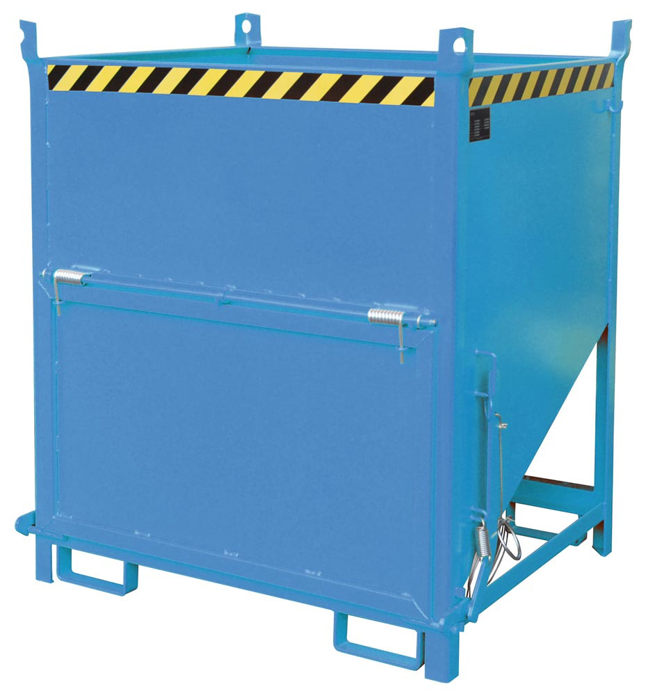 Silobehälter, LxBxH 1000x1200x1405 mm, Vol. 1,0 cbm, Traglast 1500 kg, stirnseitige Klappe, lackiert RAL 5012 lichtblau