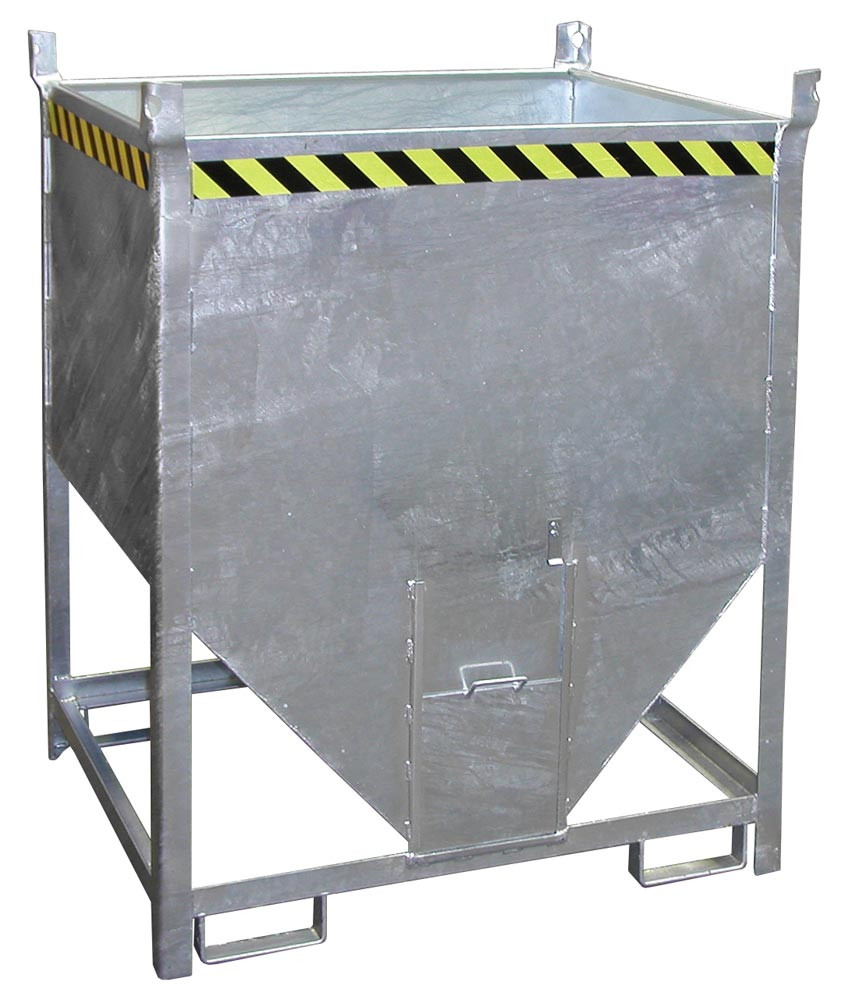 Silobehälter, LxBxH 1000x1200x1495 mm, Vol. 1,0 cbm, Traglast 1500 kg, stirnseitiger Schieberverschluss, verzinkt