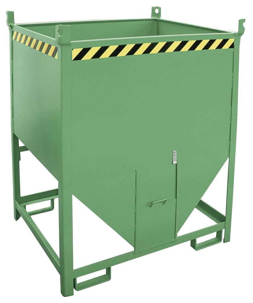 Silobehälter, LxBxH 1000x1200x1495 mm,Vol. 1,0 cbm, Traglast 1500 kg, stirnseitiger Schieberverschluss, lackiert RAL 6011 resedagrün