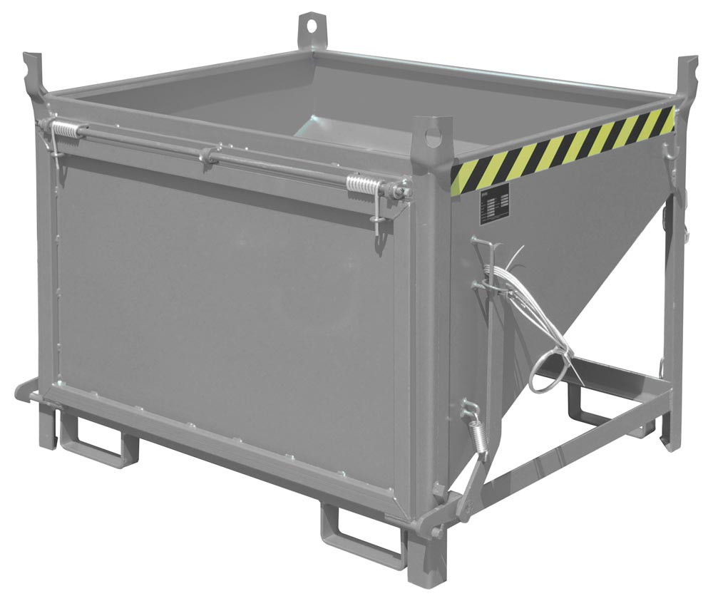 Silobehälter, LxBxH 1000x1200x935 mm, Vol. 0,5 cbm, Traglast 750 kg, stirnseitige Klappe, lackiert RAL 7005 mausgrau E872900