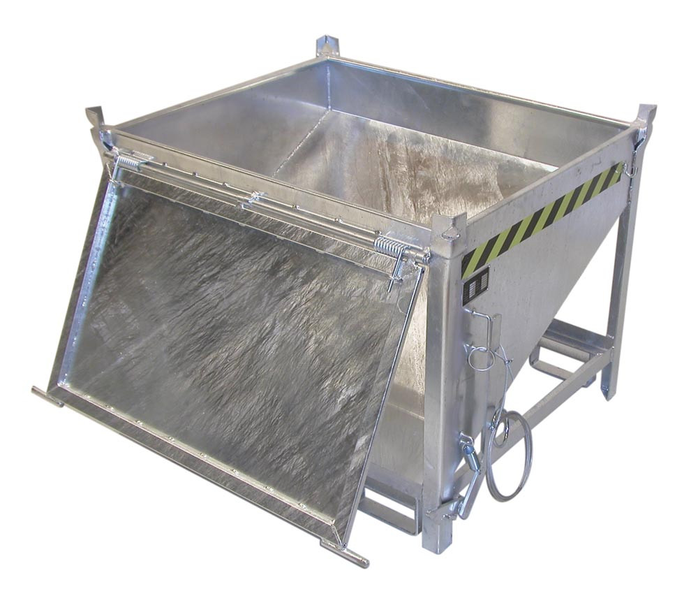 Silobehälter, LxBxH 1000x1200x935 mm, Vol. 0,5 cbm, Traglast 750 kg, stirnseitige Klappe, verzinkt