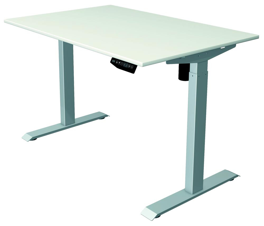 Sitz-/Stehschreibtisch el. höhenverstellbar, BxTxH 1200x800x740-1230 mm, Dekor weiß, Gestell silber