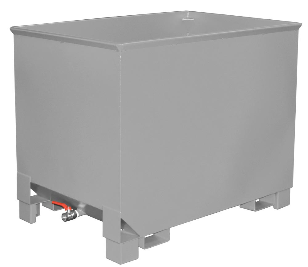 · Robuste Stahlkonstruktion mit glatten Innenwänden · Öl- und wasserdicht · 3-fach stapelbar auf 4 Stapelecken · Entleerung mittels Drehgerät