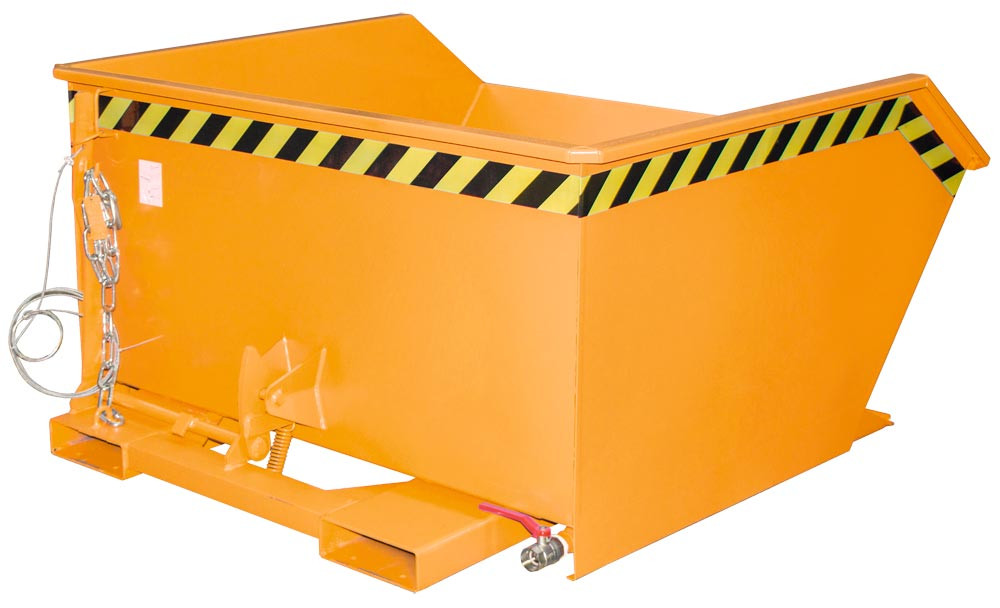 Späne-Mulden-Selbstkippbehälter, automatischer Aufrichter, Traglast 1000 kg, LxBxH 1440x780x680 mm, Vol. 0,50 cbm, RAL 2000 gelborange