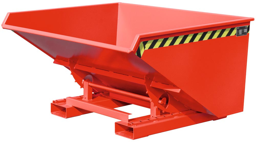 Späne-Selbstkippbehälter mit Abrollsystem, Volumen 0,275 cbm, LxBxH 960x1210x540 mm, lackiert RAL 3000 rot