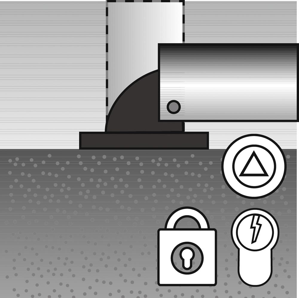 ∙ Aluminiumpfosten Ø 76 mm ∙ Höchster Bedienungskomfort durch Lift-Automatik ∙ Durch leichten Druck auf das Fußpedal stellt sich der Pfosten automatisch auf und schließt ab · Höhe über Flur: 900 mm