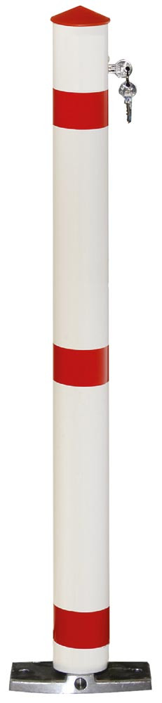 Sperrpfosten aus Alu, rund, Durchm. 76 mm, mit Liftautomatik, zum Aufschrauben, kippbar, mit Profil- Zylinderschloß