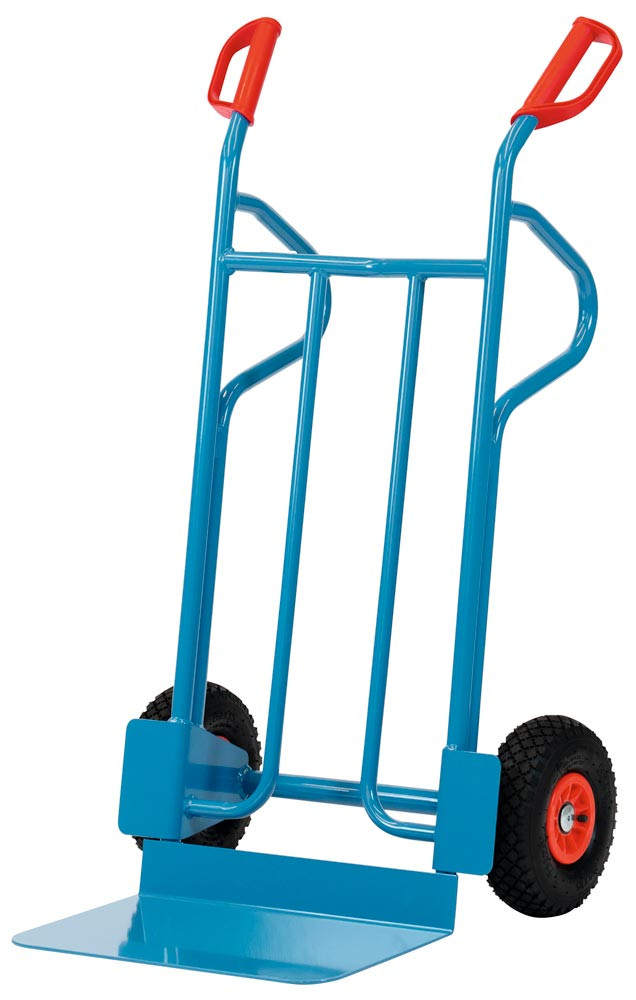 Stahlrohrkarre, Schaufel-BxT 450x150 mm, HxB 1200x620 mm, Traglast 350 kg, Luftbereifung, RAL 5007 brillantblau