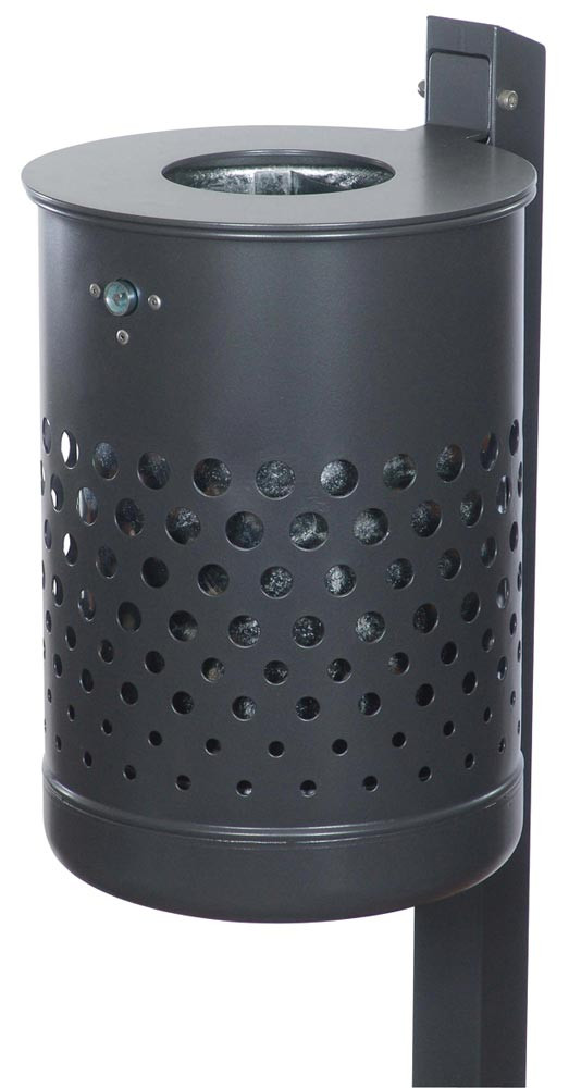 Stand-Abfallbehälter 35 l, gelocht m. Deckelscheibe, DxH 340x475 mm, inkl. Q-Rohrpfosten zum Einbetonieren, ohne Einsatzbehälter, feuerverzinkt