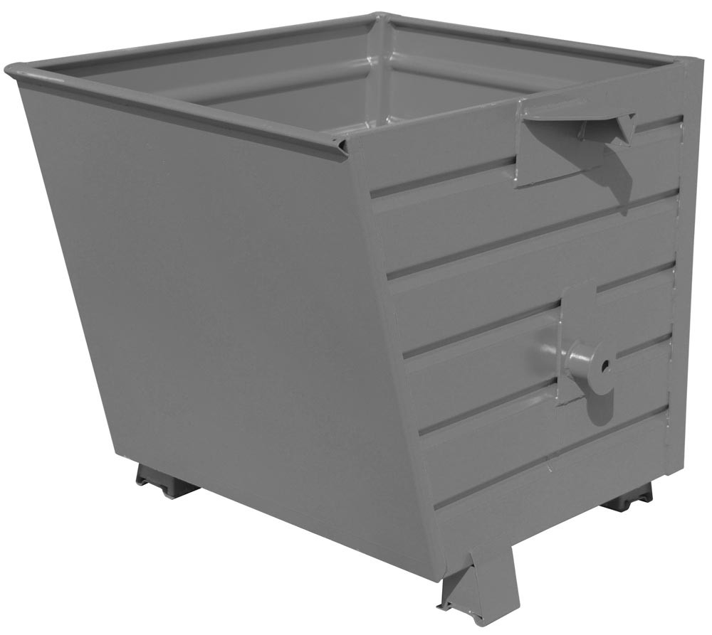 ∙ Robuste, profilierte Stahlblechkonstruktion ∙ Gefüllt 3-fach stapelbar ∙ 2 Zapfen zur Behälter-Aufnahme mittels Kipptraverse ∙ Für Entleerung per Seilzug vom Staplersitz aus bitte zusätzlich Kipptraverse mitbestellen