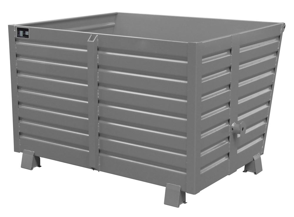 ∙ Robuste, profilierte Stahlblechkonstruktion ∙ Gefüllt 3-fach stapelbar ∙ 2 Zapfen zur Behälter-Aufnahme mittels Kipptraverse ∙ Für Entleerung per Seilzug vom Staplersitz aus bitte zusätzlich Kipptraverse mitbestellen