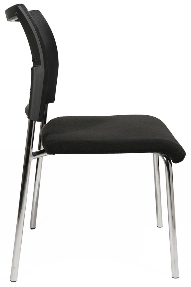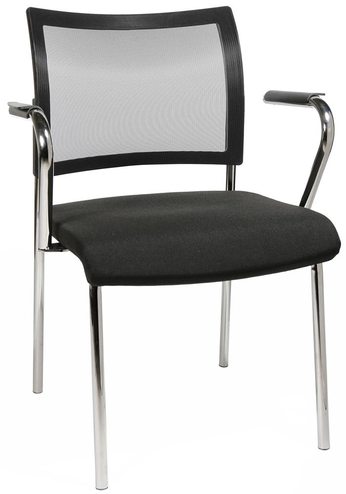 · Ergonomisch geformte Rückenlehne mit atmungsaktiver Netzbespannung und schwarzem Kunststoffrahmen · Bequem gepolsteter Muldensitz mit abgerundeter Vorderkante · Verchromtes Vierfußgestell aus Rundrohr Ø 22 mm · Kunststoff-Fußgleiter · Stapelbar bis zu 2 Stühlen · Armlehnen optional gegen Aufpreis lieferbar · VE 2 Stück