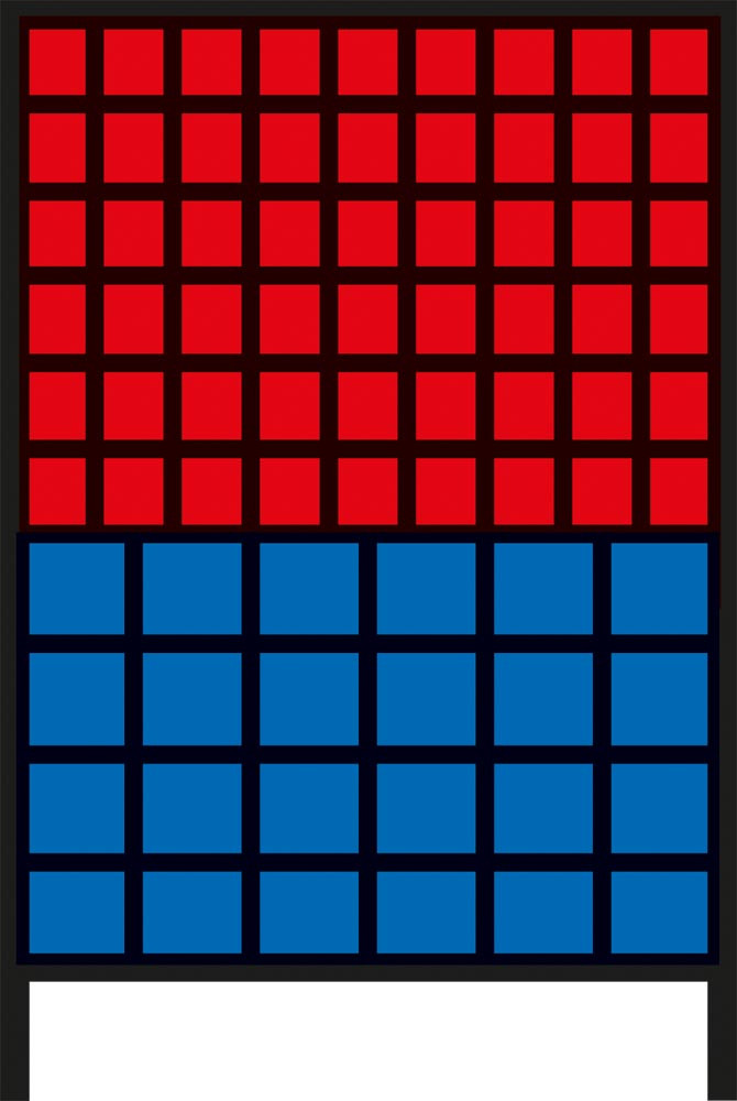 54 x Gr. 5 rot, 24 x Gr. 4 blau
