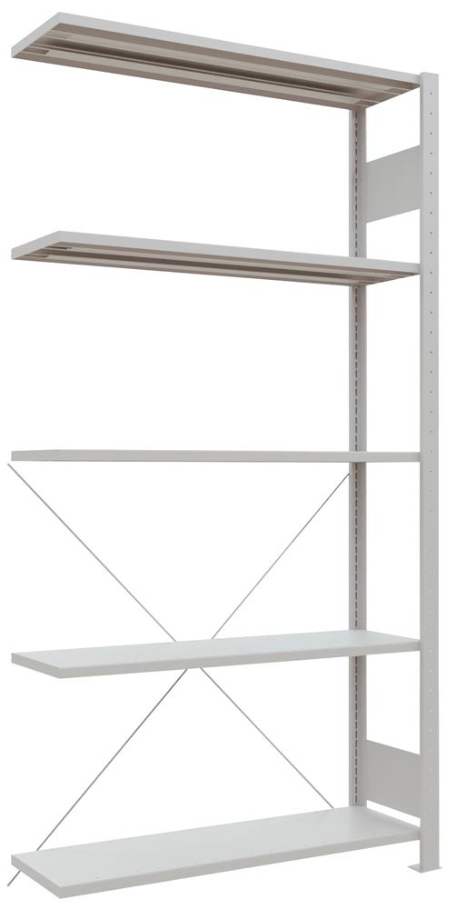 Steckregal, Anbaufeld, RAL 7035 lichtgrau, 5 Fachböden, Fachlast 150 kg, Feldlast 1300 kg, BxTxH 1000x300x2000 mm