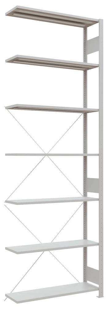 Steckregal, Anbaufeld, RAL 7035 lichtgrau, 7 Fachböden, Fachlast 150 kg, Feldlast 2300 kg, BxTxH 1000x300x3000 mm