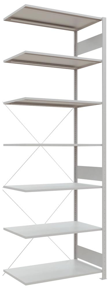 Steckregal, Anbaufeld, RAL 7035 lichtgrau, 7 Fachböden, Fachlast 150 kg, Feldlast 2300 kg, BxTxH 1000x600x3000 mm