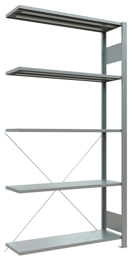 Steckregal, Anbaufeld, verzinkt, 5 Fachböden, Fachlast 150 kg, Feldlast 1300 kg, BxTxH 1000x300x2000 mm