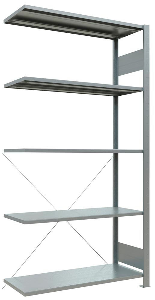 Steckregal, Anbaufeld, verzinkt, 5 Fachböden, Fachlast 150 kg, Feldlast 1300 kg, BxTxH 1000x400x2000 mm