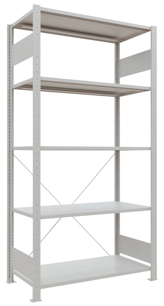 Steckregal, Grundfeld, RAL 7035 lichtgrau, 5 Fachböden, Fachlast 150 kg, Feldlast 1300 kg, BxTxH 1000x500x2000 mm