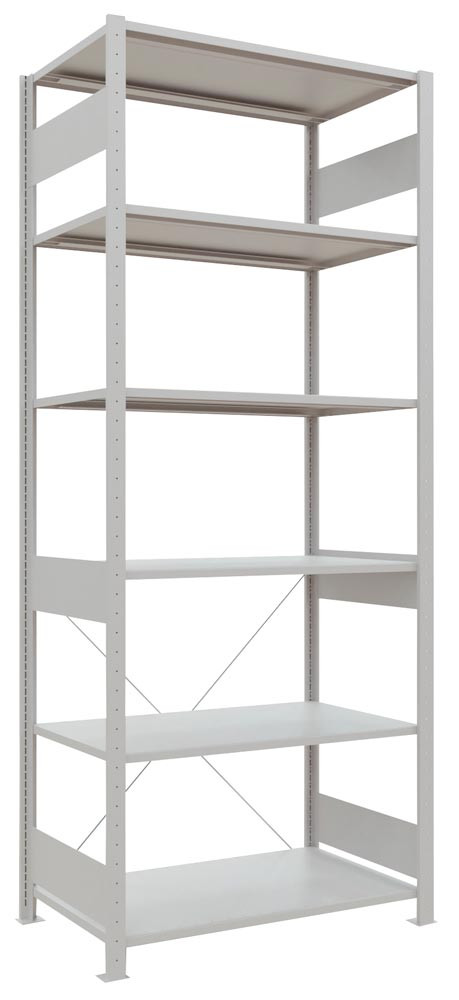 Steckregal, Grundfeld, verzinkt, 6 Fachböden, Fachlast 150 kg, Feldlast 1700 kg, BxTxH 1000x300x2500 mm E826737