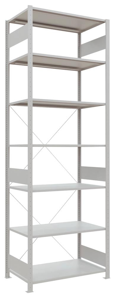 Steckregal, Grundfeld, RAL 7035 lichtgrau, 7 Fachböden, Fachlast 150 kg, Feldlast 2300 kg, BxTxH 1000x600x3000 mm