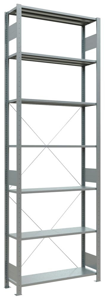 Steckregal, Grundfeld, verzinkt, 6 Fachböden, Fachlast 150 kg, Feldlast 1700 kg, BxTxH 1000x300x2500 mm E826737
