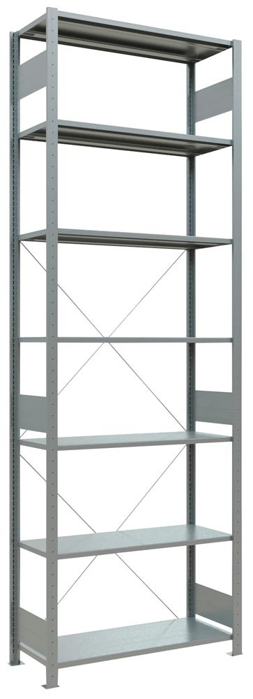 Steckregal, Grundfeld, verzinkt, 6 Fachböden, Fachlast 150 kg, Feldlast 1700 kg, BxTxH 1000x300x2500 mm E826737