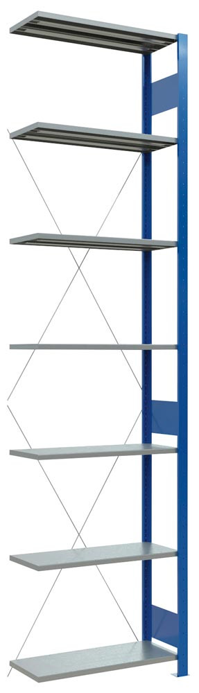 Steckregal, RAL 5010 enzianblau, Anbaufeld, 6 verzinkte Fachböden, BxTxH 750x300x2500 mm, Fachlast 150 kg E1992013